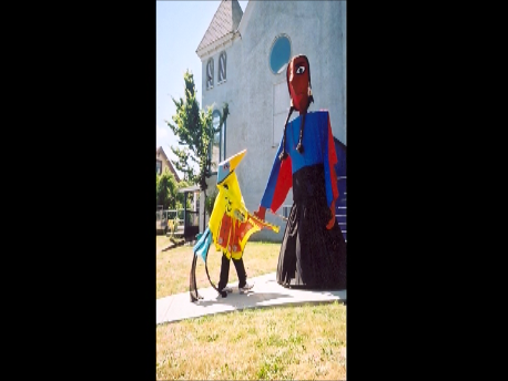 "Puppets give puppeteers permission to explore deeply, yet feel emotional safety as a result of having the distance of being in character. Situations that are part of the social fabric, but are often without voice, are brought into the open through both the comic antics and the serious tones that these giants embody. The fact that giant puppets are visually stunning, employ art forms from music to myth, break the barrier of the printed word, can be presented in local languages, and engage emotion as well as reason ensure they provide a powerful spectacle. We acknowledge grief - and hope - collectively." Odette Laramee